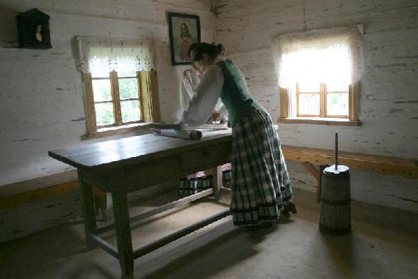 Gyvenamąsis namas. Gyvenamąjį namą sudaro du galai ir priemenė. Viename gale įrengta aukšta molinė krosnis, kerčioje tarp langų stovi stalas, pasieniais nutįsę suolai. Čia aptinkame ir ratelį bei kraičio skrynią, lovį mėsai. Seniau virtuvėje vyko visas gyvenimas. Vyrai kortuodavo, moterys verpdavo ir dainuodavo. Žymią namo dalį užima priemenė. Iš jos kopėčiomis galima užlipti į palėpę. Priemenėje kitados laikyta kiaules. Ten ruošta joms ėdalą ir šerta.