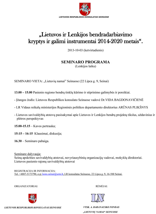 Seminaras Seinų „Lietuvių namuose“