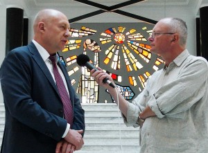 Alko komanda apsilankė bibliotekoje, kai joje dar vyko paskutiniai pasiruošimo darbai. Šioje ekskursijoje Audrį Antanaitį ir Arūną Sartanavičių lydėjo Lietuvos nacionalinės Martyno Mažvydo bibliotekos direktorius prof. dr. Renaldas Gudauskas.